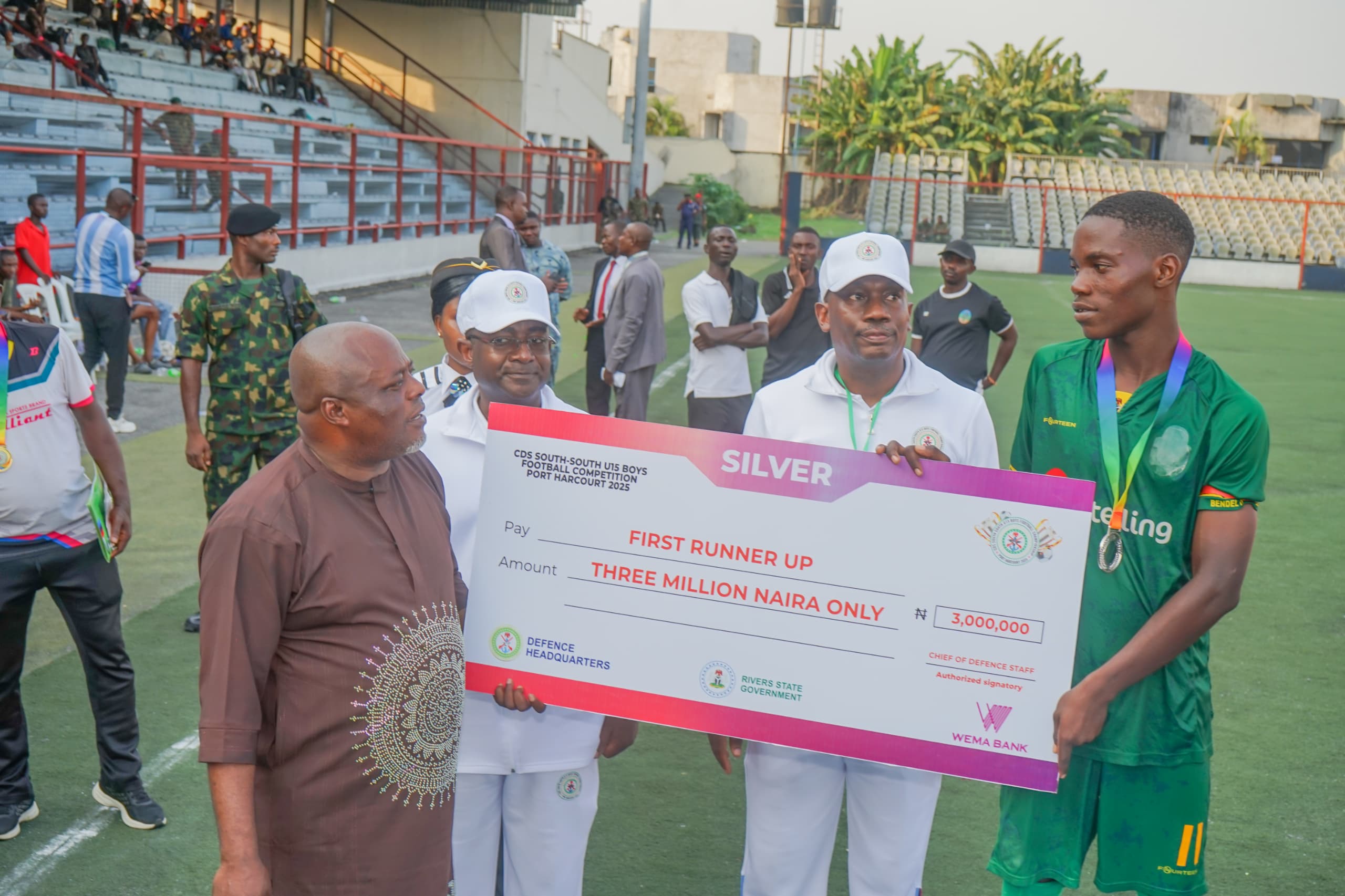 Earlier, during the third-place match, the General Officer Commanding (GOC) 6 Division, Nigerian Army, Major General Emmanuel Eric Emekah, urged participating youths to shun social vices such as drug abuse, cultism, indiscipline and truancy. He encouraged them to embrace sports as a pathway to discipline, teamwork and personal growth, thanking the CDS for entrusting 6 Division with hosting the competition.