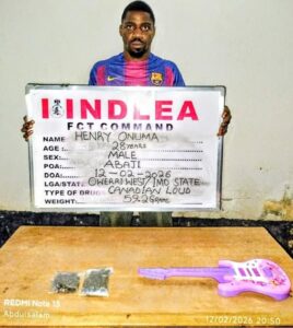 In Abuja, NDLEA officers intercepted a parcel from Enugu containing a children’s toy guitar used to conceal 59.2 grams of “Canadian Loud,” a strain of cannabis. The consignee, Henry Onuma, was arrested in Life Camp.