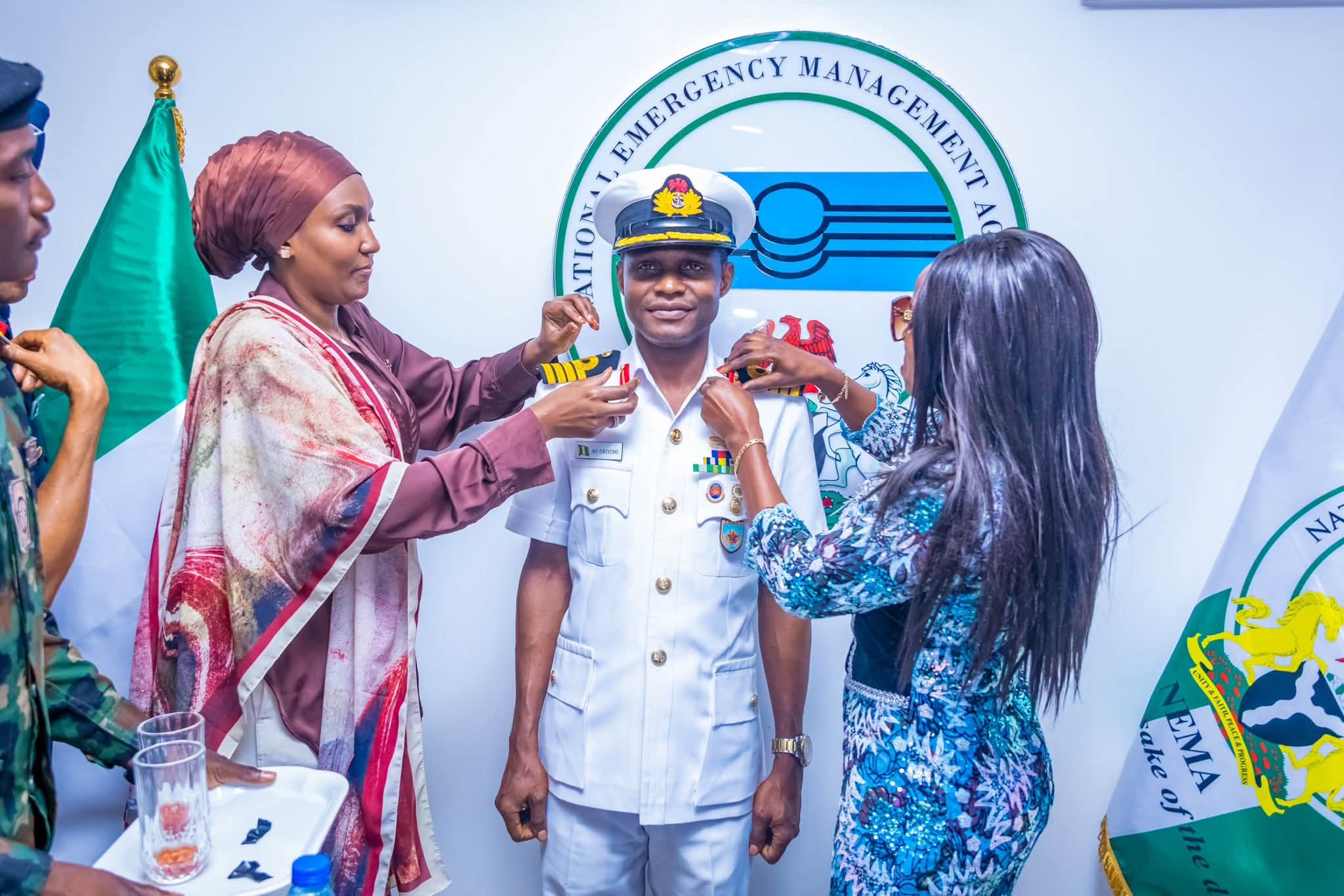 The Director General of the National Emergency Management Agency (NEMA), Mrs. Zubaida Umar, has decorated the Head of the NEMA Mission Control Centre (NMCC), Ademola Oriyomi, with his new rank of Navy Captain, urging him to uphold the highest standards of service, discipline, and dedication.