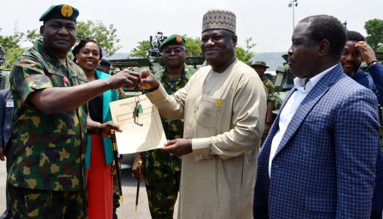 Speaking during the ceremony Dr. Ibrahim Abubakar Kana, the Permanent Secretary of the Ministry of Defence, representing Minister Alhaji Mohammed Badaru Abubakar, officially handed over 20 APCs to General Christopher Gwabin Musa, the Chief of Defence Staff.