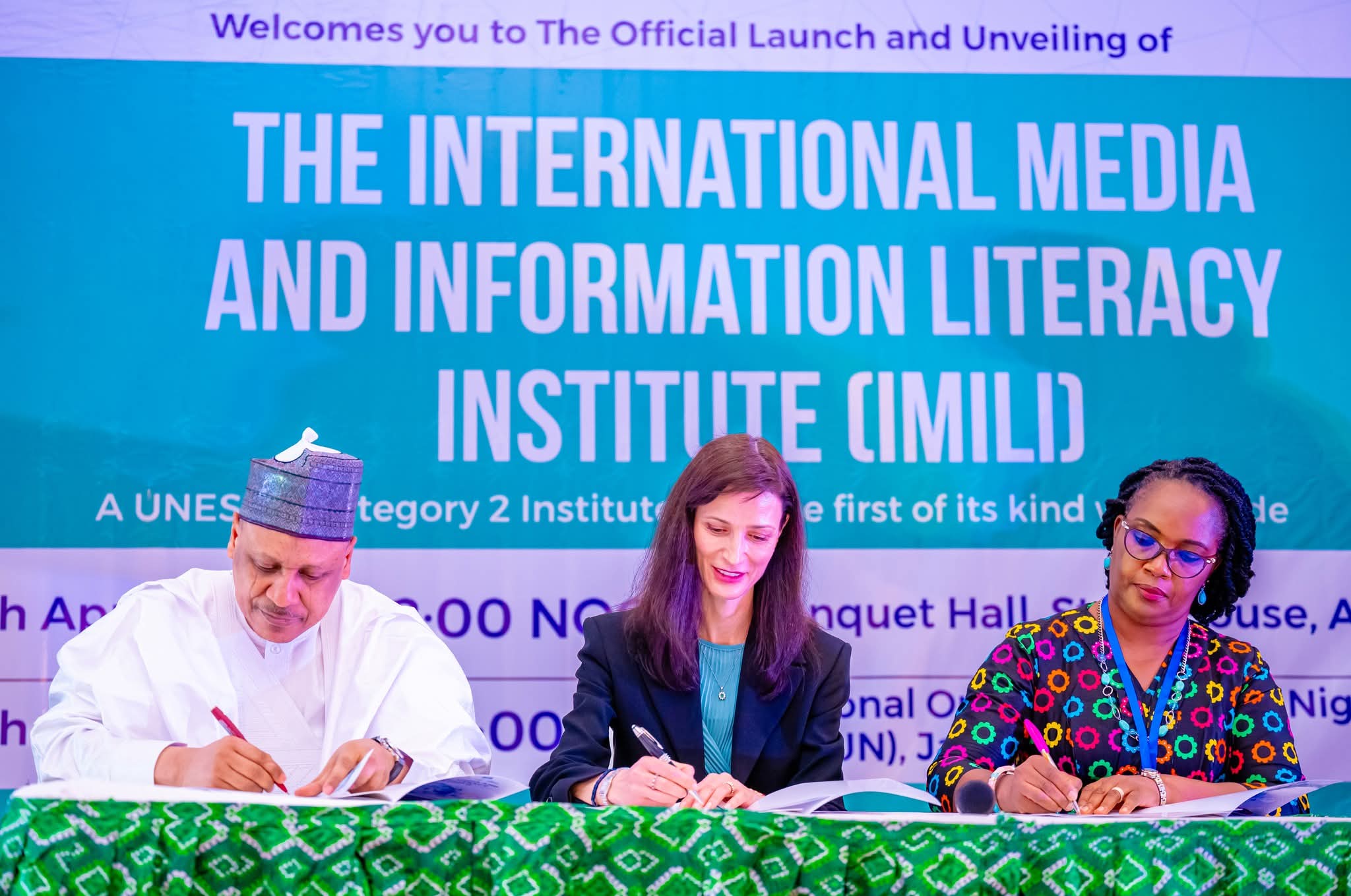 The MoU was signed by the Honourable Minister of Information and National Orientation, Mohammed Idris; UNESCO’s Assistant Director-General for Communication and Information, Mariya Gabriel; and the Director of the Institute, Sharon Omotosho.