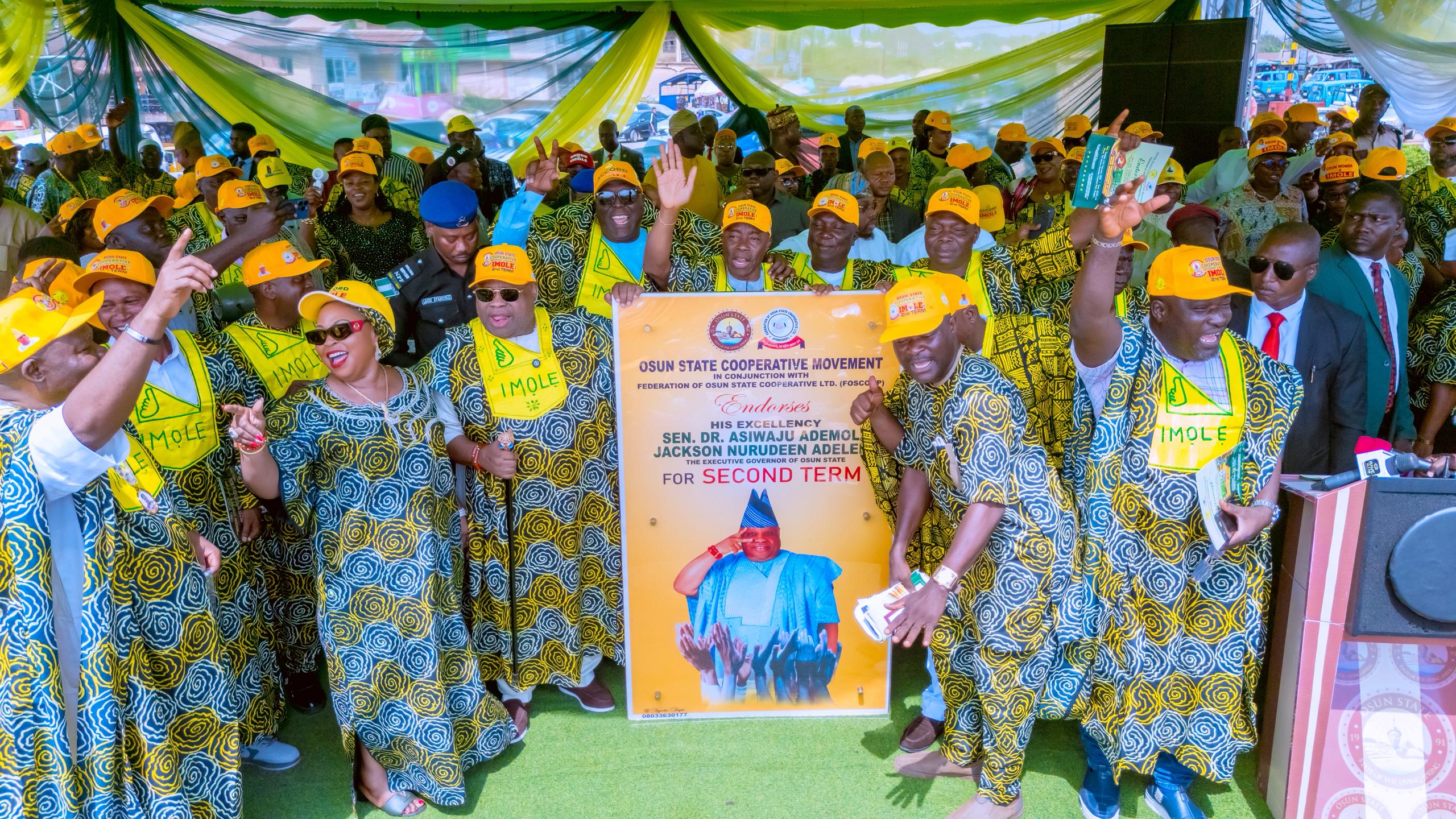 The Osun State Cooperative Movement under the umbrella of the Federation of Osun State Cooperative Ltd (FOSCOOP) has officially endorsed Governor Ademola Adeleke for a second term in office as preparations intensify for the August 8, 2026 governorship election.
