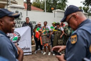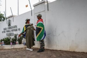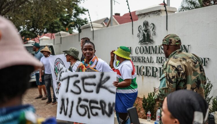 Members of the Progressive Forces of South Africa, representing concerned civic groups and citizens, staged a protest outside the Nigerian Embassy in Pretoria following the contentious installation of Nigerian chief Solomon Ogbonna Eziko as an “Igbo King” in KuGompo, Eastern Cape.
