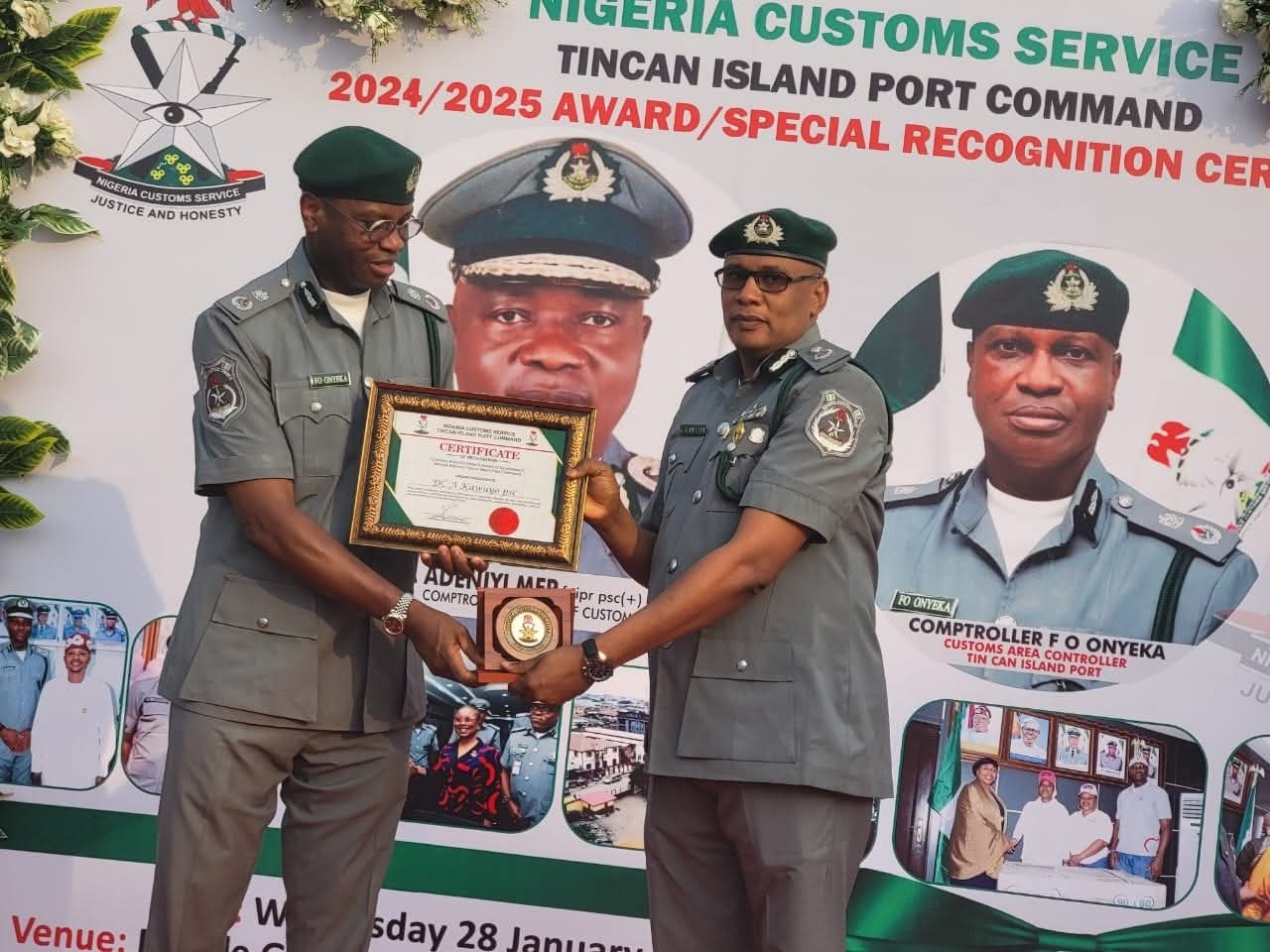 The Nigeria Customs Service (NCS), Tin Can Island Port Command, on Wednesday, 28 January 2026, recognised outstanding officers and announced a landmark revenue collection of ₦1.6 trillion for the 2025 fiscal year during a ceremony held at its headquarters in Lagos.
