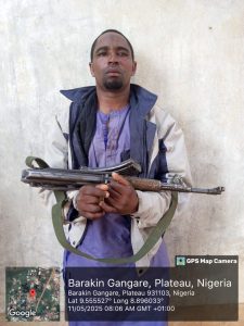 According to a press statement signed by Major Samson Nantip Zhakom, Media Information Officer for Operation SAFE HAVEN, the operation followed the earlier arrest of a known gunrunner and kidnapper, Mr. Yahaya Adamu, on 10 May 2025 at Barakin Gangare, also in Barkin Ladi LGA.