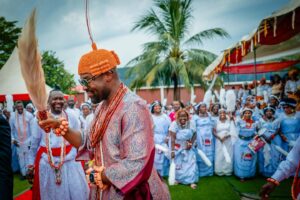 The procession into the palace was led by prominent chiefs, including Ojoye Francis Omatseye, the Udefi of Warri (Obaloye), and Ojoye Prest Udueyin, the Akwinotsokan of Warri (Adobodoji), alongside a proud display of sons and daughters of the community.