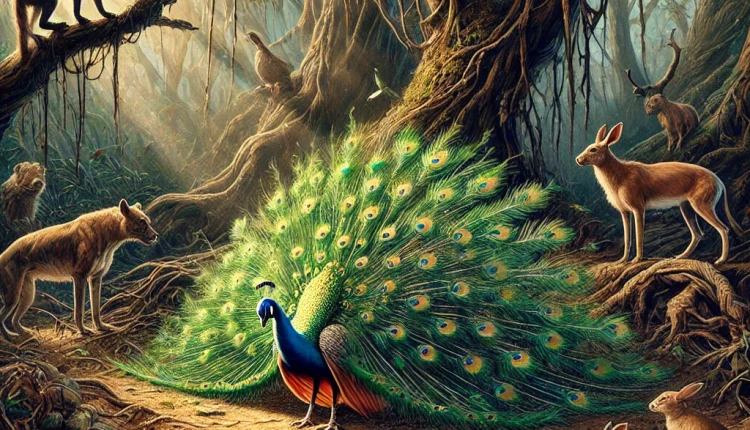 The peacock, adorned in the brilliance of its robe,