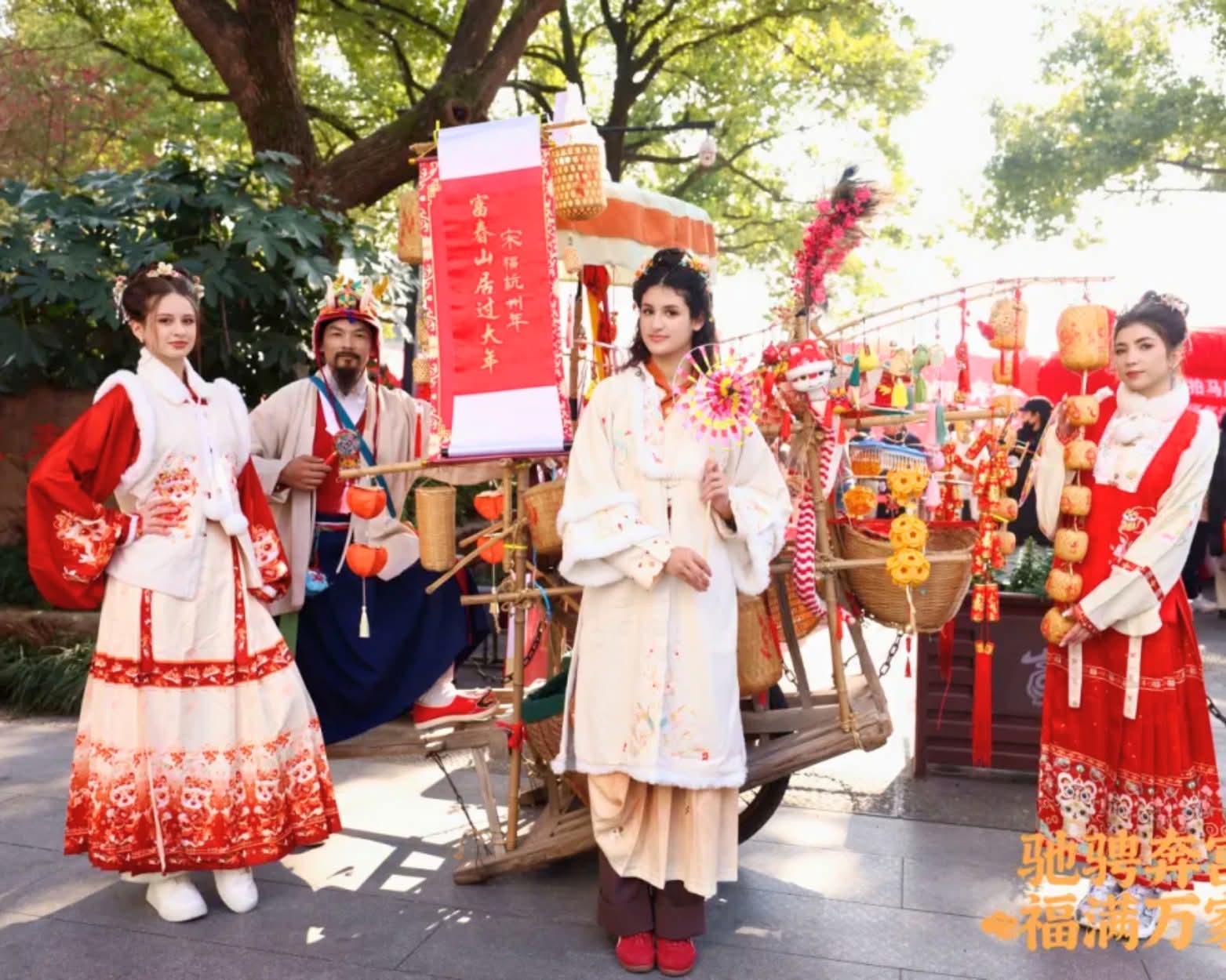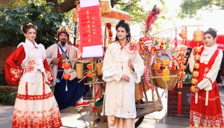 Students from Zhejiang University of Technology (ZJUT) brought the spirit of the Song Dynasty to life during the Fuchun Mountains New Year Parade, donning traditional Hanfu attire and joining the vibrant festivities.